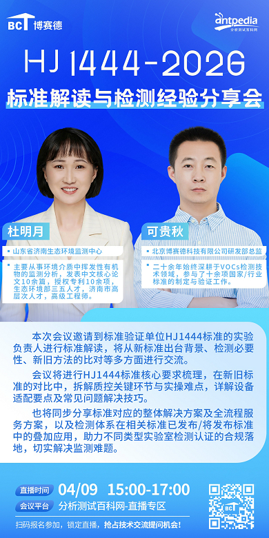 HJ 1444-2026新标准落地,实操难题怎么破? 4月9日15:00 标准专家+行业大咖双主讲,梳理核心要点、设备适配技巧与合规方案,干货满满! 扫码报名,抢占专属交流名额👇,解锁实验室合规落地关键技巧!